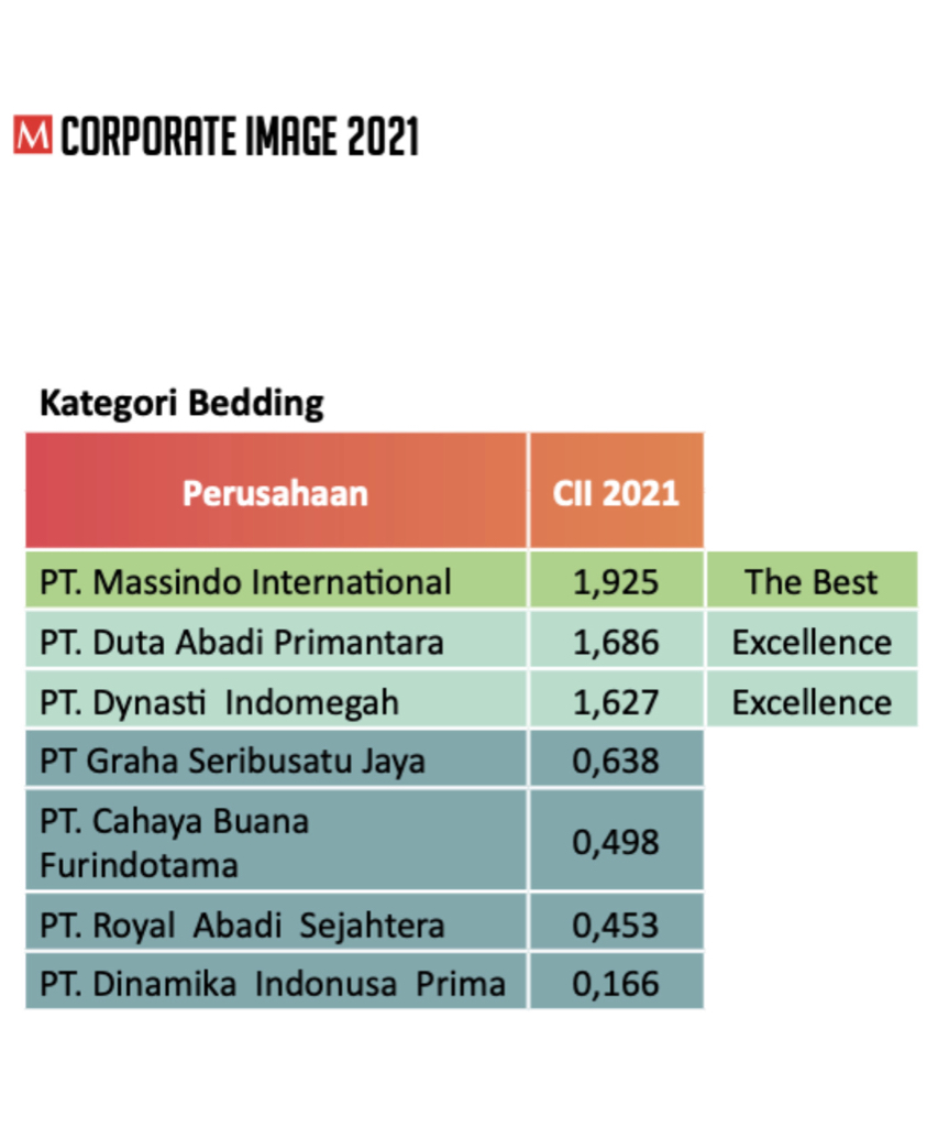 Massindo Group Raih Predikat Perusahaan Paling Dikagumi (“Indonesia’s Most Admired Company”) Jakarta, 12 Juni 2017 – Produsen Comforta spring bed, PT. Massindo International (Massindo Group), kembali Read more ...