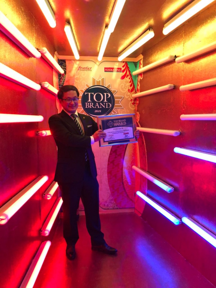 Comforta Spring Bed kembali meraih penghargaan TOP BRAND Award di tahun 2019 di Hotel Mulia, Senayan - Jakarta pada tgl. 14 Februari 2019. Penghargaan ini diserahkan oleh Chairman Frontier Consulting Group, Bpk. Handi Irawan, MBA di hadapan ratusan eksekutif perusahaan terkemuka dan banyak media masa nasional. Read more ...